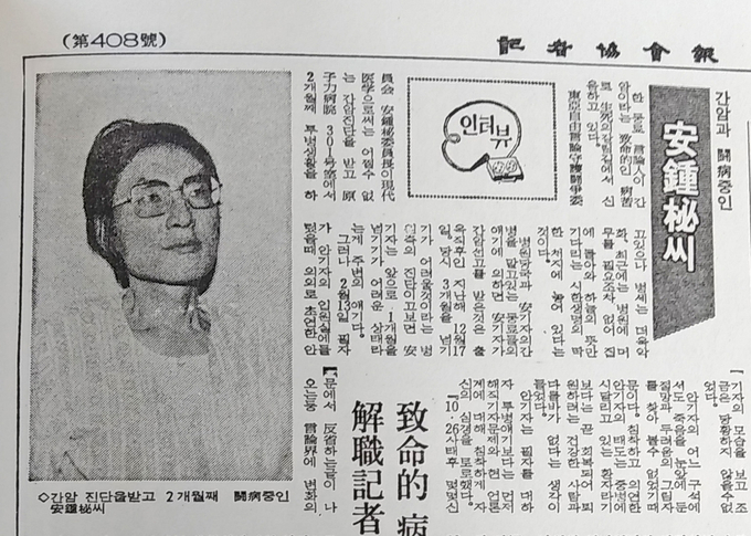 안 기자는 필자를 대하자 투병 얘기보다는 먼저 해직기자 문제와 현 언론계에 대해 침착하게 자신의 심경을 토로했다.