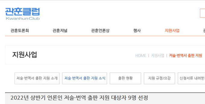 관훈클럽정신영기금(이사장 김진국)은 17일 2022년 상반기 언론인 저술·번역 출판 지원 대상자 9명을 선정했다고 밝혔다.
