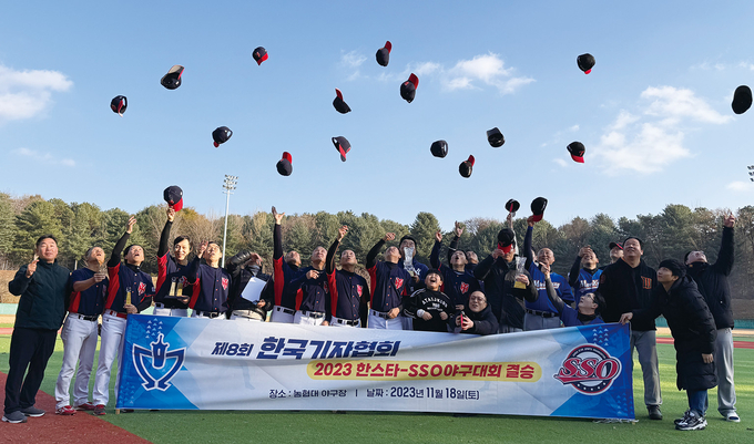 지난 18일 농협대 야구장에서 열린 ‘제8회 한국기자협회 한스타-SSO 야구대회’ 결승전에서 야구하니 야구단(한겨레신문)이 매경 야구단(매일경제신문)을 12대6으로 꺾고 우승했다. 야구하니 야구단은 지난해 대회에 이어 2연속 우승했다. 최우수선수상은 야구하니 야구단 옥기원 선수, 우수선수상은 매경 야구단 최형규 선수가 받았다. 감독상은 야구하니 야구단 이경주 감독, 타격상은 매경 야구단 이강훈 선수, 우수투수상은 야구하니 옥기원 선수, 최다안타상은 야구하니 박성영 선수에게 돌아갔다.