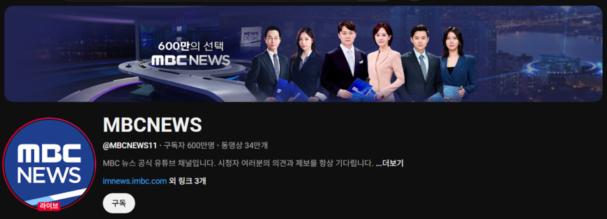 MBC가 국내 언론사 중 처음으로 유튜브 뉴스 채널 구독자 600만 명을 돌파했다.