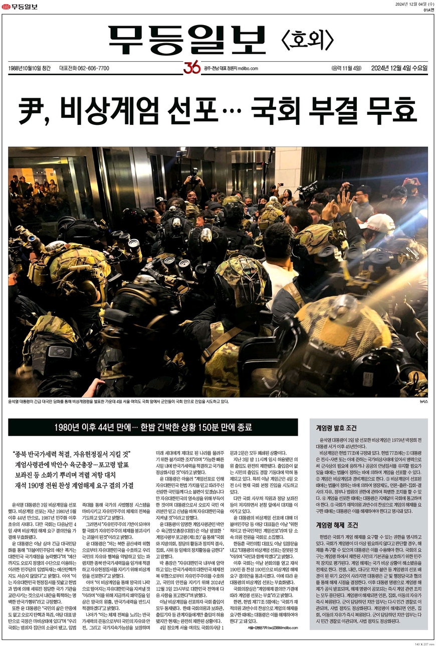 광주일보는 당시 밤 11시부터 제작에 들어가 자정 무렵 1차 마감을 끝냈다. 이후 국회 표결 결과를 기다리며 제목 등을 수정, 오전 12시30분 즈음 호외 1만5000부를 찍어냈다. 무등일보도 비상계엄 발령과 국회의 계엄 해제 요구안 가결 소식을 담아 2~3시간 만에 호외를 제작했다. 호외 발행은 1988년 무등일보 창간 이후 처음 있는 일이었다. 류성훈 국장은 “제작한 호외는 기자들이 직접 들고 가 광주공항, 광주고속버스터미널 등 사람들이 많이 모이는 곳에 배치했다”며 “무등일보는 그 후 2번의 호외를 더 발행했다. 역사의 기록을 남겨야 한다는 사명감이 컸던 것 같다”고 말했다.
