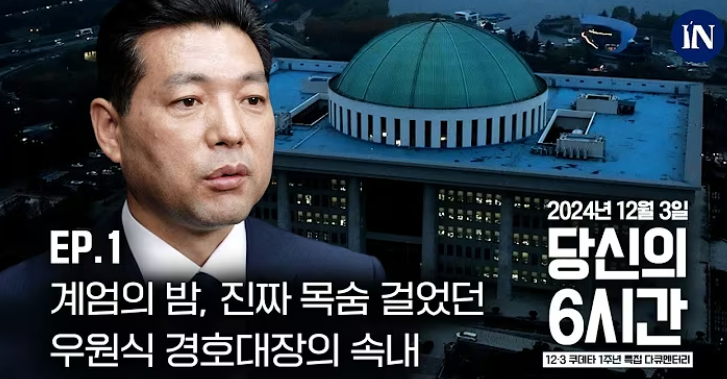 시사IN은 11월29~30일 특집 다큐멘터리 <당신의 6시간> 1·2부를 공개했다. 우원식 국회의장, 김성록 국회의장 경호대장, 조오섭 국회의장 비서실장 등 국회의장실 관계자 11명을 인터뷰해 지난해 12월3일 밤 긴박했던 비상계엄 선포부터 해제까지 6시간을 톺아봤다. 최한솔 PD는 “14분짜리, 16분짜리 두 편으로 냈는데 계엄 선포 시각에 맞춰 12월3일 밤 통합본을 공개할 예정”이라고 했다. 시사IN은 다큐와 별도로 개별 인터뷰를 온라인으로 내고 있다.