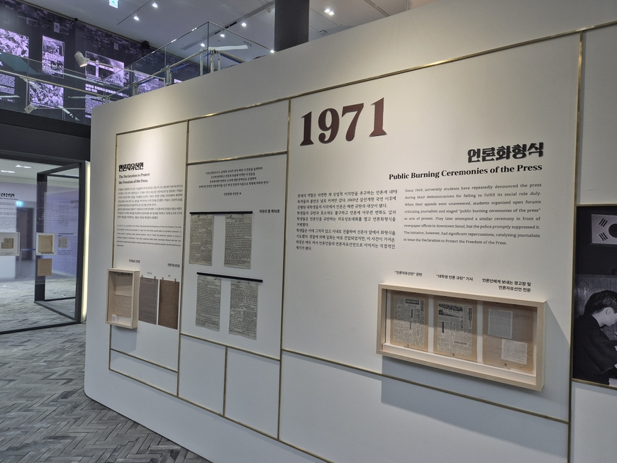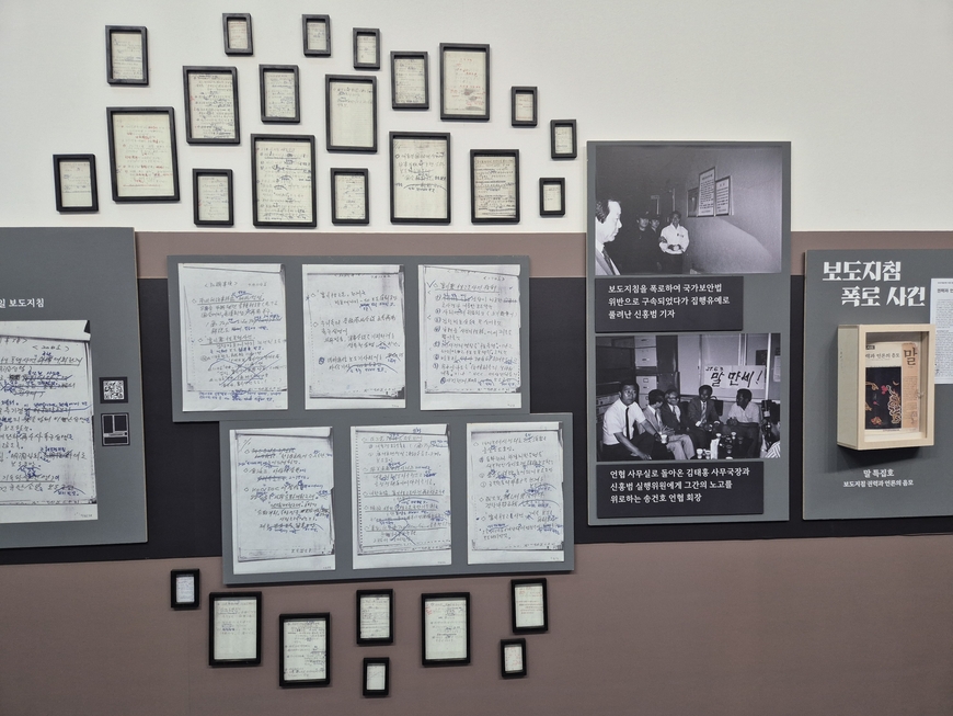 독재정권에 맞선 언론인의 기록과 시대에 응답한 예술을 한자리에서 볼 수 있는 특별전 ‘잘린 문장 열린 광장’이 지난 2일 서울 용산 민주화운동기념관 MI 중앙홀에서 개막했다. 1970년대 언론탄압 당시 자유언론실천선언을 비롯한 각종 선언문과 성명서, 제도 언론이 다루지 않았던 민주화운동 사건을 기록한 ‘보도되지 않은 민주인권사건 일지’와 당시 재판 최후 진술 음성자료, 1980년대 전두환 신군부가 언론사에 하달한 보도지침을 공개한 전시다.