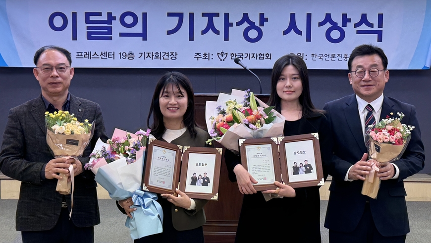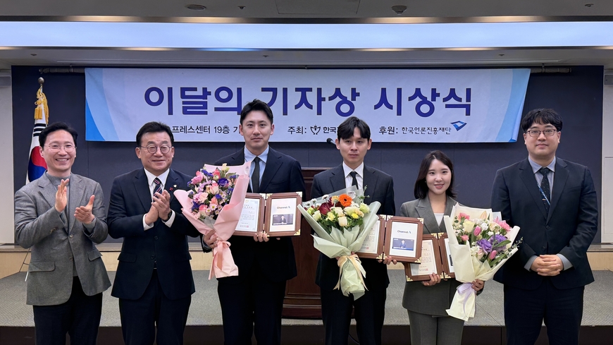 한국기자협회는 23일 서울 중구 한국프레스센터 19층 기자회견장에서 ‘제423회(2025년 11월) 이달의 기자상’ 시상식을 개최했다. 이날 시상식엔 수상자인 기자들을 비롯해 소속 언론사 편집국장과 선후배 동료, 가족들이 참석해 수상의 기쁨을 함께 나눴다.