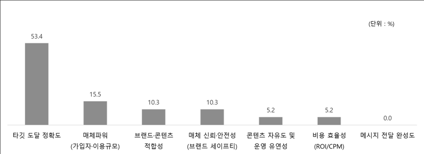 한편, 온라인동영상서비스(OTT) 광고에 대한 업계 인식을 파악하기 위해 국내 153개 광고주를 대상으로 처음 실시한 ‘2025년 신매체(OTT) 광고 인식 조사’ 결과도 함께 발표됐다. 조사 결과 광고주가 OTT 광고를 선택하는 주요 요인으로 ‘타깃 도달의 정확도’가 53.4%으로 가장 많았다. 그 다음으로 ‘매체파워(가입자·이용규모)’가 15.5%, ‘브랜드·콘텐츠적합성’과 ‘매체 신뢰·안전성’이 각각 10.3%으로 나타났다.