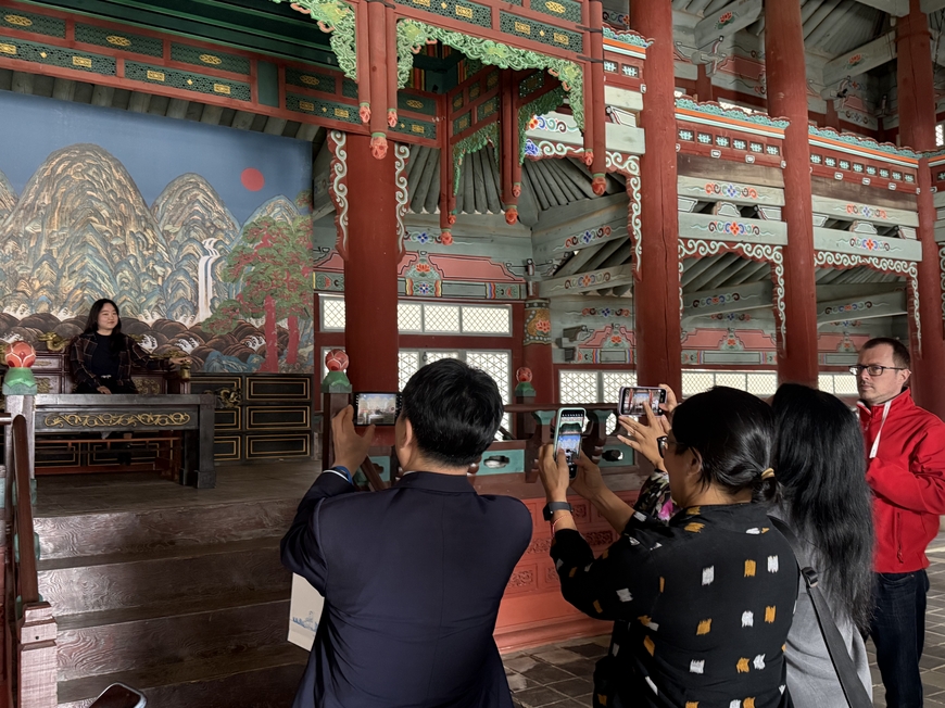 기자들은 경복궁을 모티프로 지어진 웅장한 세트장을 둘러보며 한국의 역사에 깊은 관심을 보였다. 특히 왕좌에 앉아 기념사진을 남기거나 저잣거리의 디테일한 소품들을 살피며 연신 감탄사를 내뱉었다.