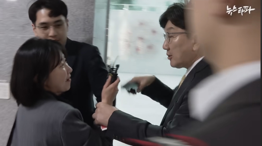 지난해 4월16일, 당시 국민의힘 원내대표였던 권 의원은 국회의원회관에서 열린 토론회 직후 마이크를 내밀며 질문하는 이명주 뉴스타파 기자 손목을 잡은 뒤 20m 이상 끌고 갔다. 자신의 보좌관과 국회 직원 등에게 “도망 못 가게 잡아”라고 지시하고, 뉴스타파를 가리켜 ‘지라시’라고 하기도 했다. 당시 이 기자는 12·3 비상계엄 후 국민의힘이 전국에 “국민께 죄송합니다. 끝까지 책임을 다하겠습니다”라고 적은 현수막을 내건 데 대해 구체적으로 어떤 부분을 사과하는 것인지 질문했다.