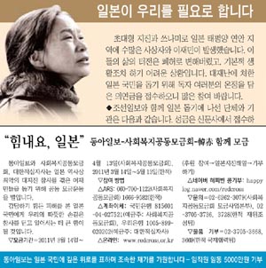 언론사들이 초대형 지진과 쓰나미로 대지진 참사를 겪은 일본 국민들을 돕기 위해 공동 모금운동을 벌이고 있다.