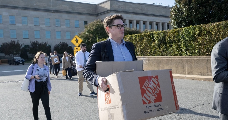 미국 국방부의 보도통제 지침을 거부한 기자들이 집단으로 출입증을 반납하고 기자실에서 짐을 뺐다. AP통신 등 외신에 따르면 15일(현지 시각) 미 워싱턴 국방부 청사 펜타곤에서 40~50명이 출입기자들이 출입…