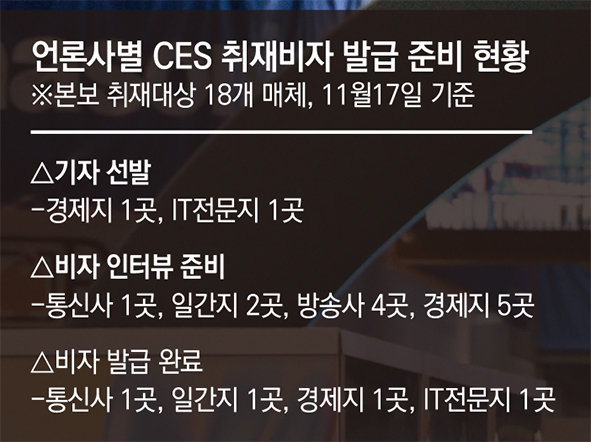 실제로 기자협회보가 취재한 18개 매체는 모두 CES를 위해 취재 비자 발급을 결정했다. 이 중 과거에도 비자를 받아온 한 곳을 제외한 17개 매체는 지난해까지 ESTA로 행사를 취재해왔다.