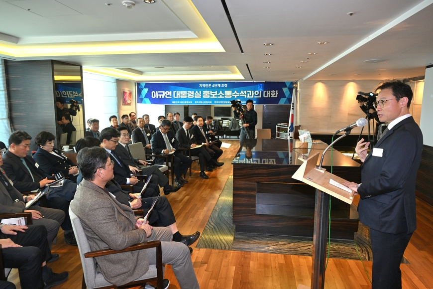 이 수석은 △지역신문발전기금 확충 △우선지원대상사 확대 △지역신문발전위원회 역할 강화 등 지역신문 지원정책을 소개하고 △지역 순수외주제작 편성 규제 완화 △지역민방 자체 편성규제 개선 △지역 밀착형 프로그램 제작 지원 △OTT 진출 지원 등 지역방송 활성화 대책을 밝혔다.