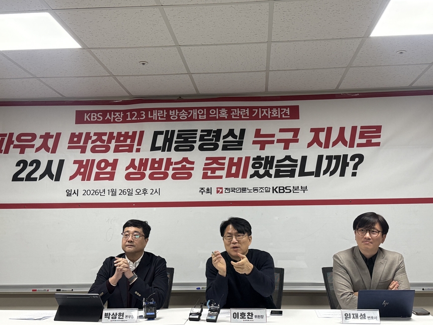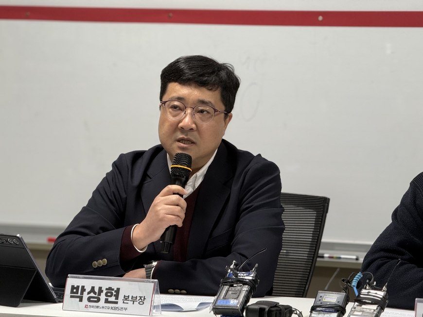 전국언론노동조합 KBS본부는 26일 긴급 기자회견을 열고 “윤석열 전 대통령의 ‘22시 KBS 생방송’ 발언은 KBS와의 소통에서 나온 것”이라며 “박장범 사장은 누구에게서 어떤 내용의 전화를 받았으며, 최재현 당시 보도국장에게 어떤 지시를 내렸는지 스스로 밝히라”고 요구했다.