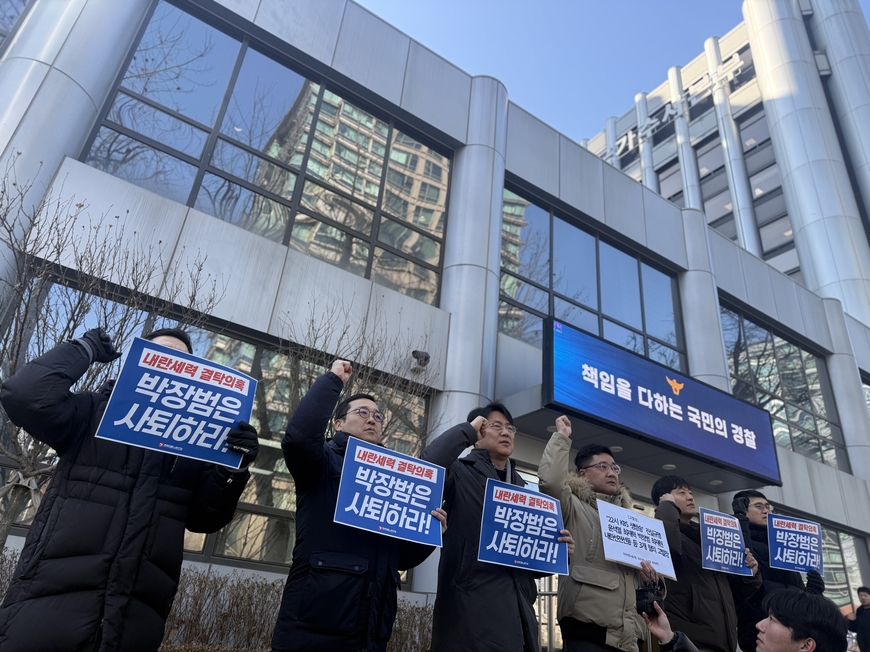 KBS본부는 9일 서울 서대문구 경찰청 앞에서 기자회견을 열고 “KBS를 대남 선전 선동 도구로 활용한 사람이 누구인지 분명히 밝혀달라”며 재수사를 촉구했다. 기자회견 직후 이들은 박장범 사장과 윤석열 전 대통령, 최재혁 전 대통령실 홍보기획비서관, 최재현 전 KBS 보도국장을 상대로 고발장을 제출했다.