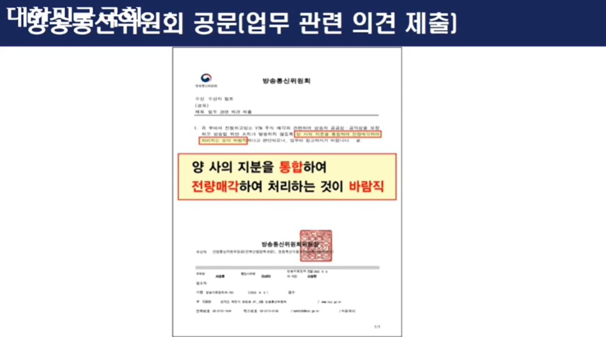 'YTN 지분 통합 매각 바람직' 내용