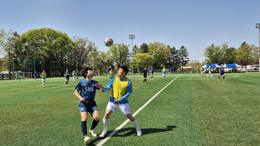 올해 축구대회의 첫 골은 이학준 조선비즈 기자가 차지했다. 이날 오전 8시에 열린 조선비즈와 메트로미디어의 첫 경기에서 전반 6분만에 첫 골을 넣은 이학준 기자는 “축구하면서 못 봤던 후배들도 보고 오랜만에 보는 선배들도 만나서 너무 기쁘다”면서 “골을 넣으니 기쁨이 두 배가 되는 것 같다”는 소감을 전했다.
