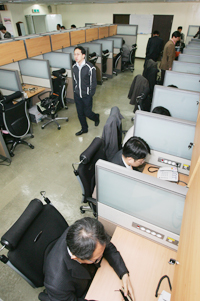 ▲ 강제 폐쇄됐던 경찰청 기자실이 24일 오전 103일만에 다시 문을 열어 기자들이 기사를 작성하고 있다. (연합) |
