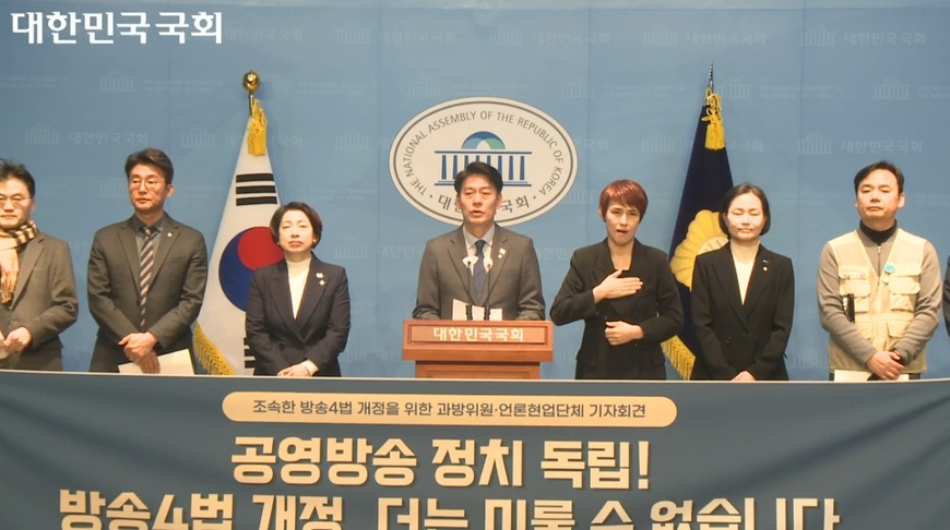 박성호 방송기자연합회장도 “12월3일을 기점으로 국면이 달라졌다. 이제 예정보다 빨리 대통령 선거가 앞당겨 치러질 가능성도 생겼다”며 “그렇다면 모든 논의가 선거판으로 빨려들기 전에 이 방송4법 논의를 착수해 조속히 처리해야 할 필요가 생겼다. 다만 이 과정에서 종합과 토론 과정이 이전보다 조금 더 속도를 내더라도 정교해졌으면 한다”고 주문했다.