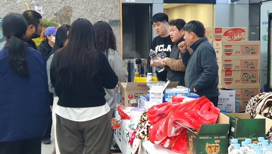 청록색 민방위복을 입은 공무원들과 소방 관계자, 제주항공 신분증을 멘 직원들이 분주하게 움직였다. 그 사이에 기자들도 있었다. 방송 특보도 끝난 시각 밤을 새워 취재 중이었다. 새벽 사이 수시로 열리는 브리핑과 사망자 발표를 확인하기 위해서다.