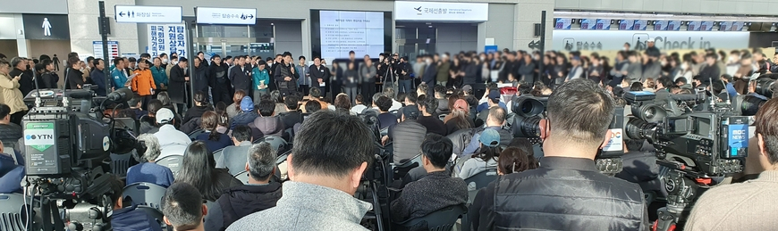 무안공항에서는 국토교통부 산하 부산지방항공청을 중심으로 제주항공과 소방, 경찰 등이 유가족을 상대로만 수시로 상황을 설명하고 있다. 기자들은 유족 사이에서 끼어들기 어려워 질문하지 못하는 상태다. 설명하는 시간이 정해져 있지 않아 낌새가 느껴지면 기자들이 몰려 들었다가 되돌아가는 일이 반복되기도 했다.