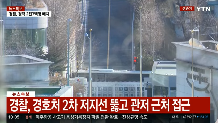 헌정 사상 처음으로 현직 대통령에 대한 체포영장 집행이 시작됐다. 현직 대통령의 피의자 입건, 출국금지 조치, 체포영장 발부와 집행까지 모두 초유의 일이며, 이 장면을 유튜브 생중계 등을 통해 대한민국 국민은 물론 세계가 지켜보고 있다. BBC, CNN 등 외신들도 현 상황을 라이브로 실시간 전달하고 있다.