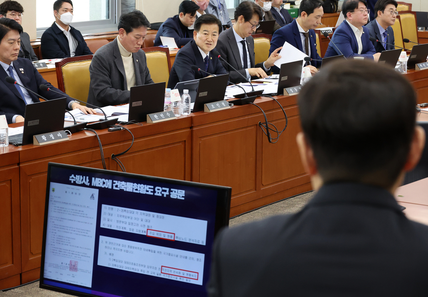 이날 전체회의에 증인으로 출석한 박건식 MBC 기획조정본부장은 “지난해 2월6일 수방사 제1경비단에서 MBC 시찰을 요청하는 협조 공문을 보냈고, 2월15일 수방사 군인 5명이 MBC 본사를 방문했다”며 “뉴스데스크 주조정실과 부조정실을 정찰했고, 이때 예비군 중대장이 MBC 사옥 도면을 요청했다. 주조정실은 붕괴될 경우 방송이 즉시 중단되는 중요 시설”이라고 밝혔다.