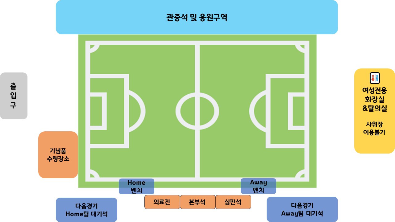 선수, 감독 외 경기 관전은 본부석 맞은 편 구역을 이용