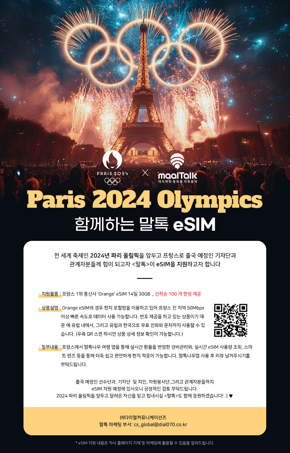2024 파리올림픽 말톡 eSIM 무료 지원