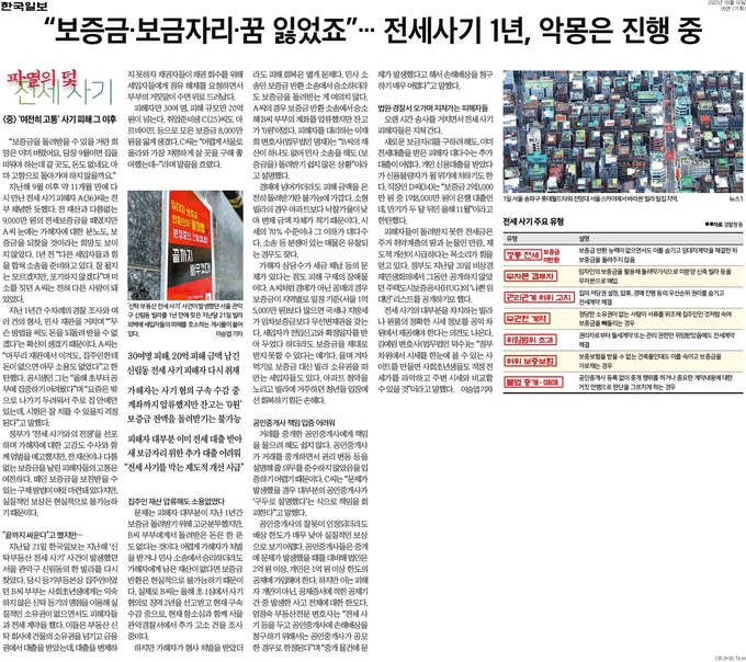 한국일보가 지난 1~3일 연재한 ‘파멸의 덫, 전세 사기’는 바로 이 전세 사기가 어떤 구조로 이뤄지는지, 그것이 어떻게 회복할 수 없는 피해를 남기는지를 들여다본 기획이다. 전세 사기 피해 사례 증가, 그리고 이에 대한 높은 우려와 관심을 방증하듯 기사에 대한 반응도 뜨거웠다. 3회차에 걸쳐 연재된 기획 기사와 보도 후 쏟아진 제보를 바탕으로 추가된 네 번째 기사까지 각각 당일 네이버 한국일보에서 가장 많이 읽힌 기사 상위 4위 안에 들었고, 여러 카페와 블로그 및 온라인 커뮤니티에도 공유됐다.