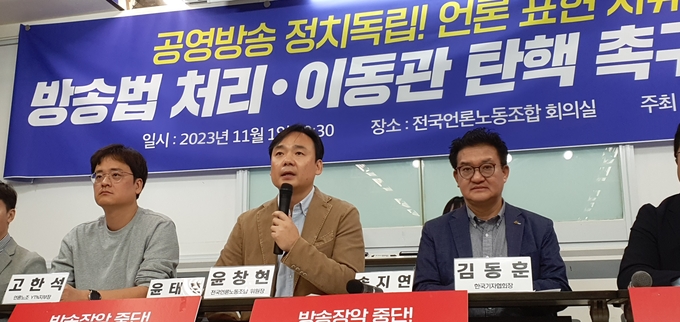 언론현업단체들이 이동관 방송통신위원장을 탄핵하고 공영방송의 정치적 독립성 보장을 위한 방송3법을 처리하라고 국회에 요구했다.